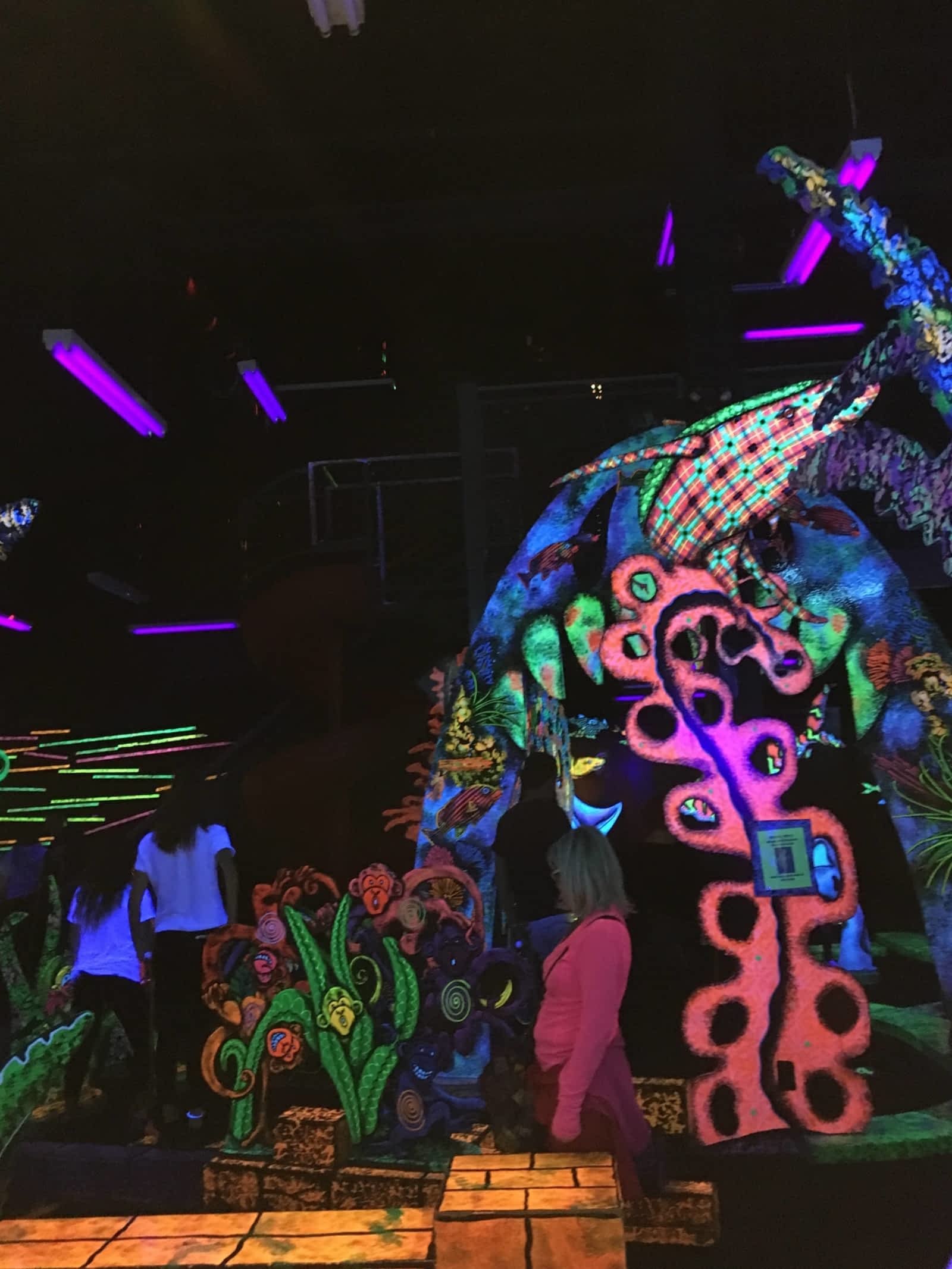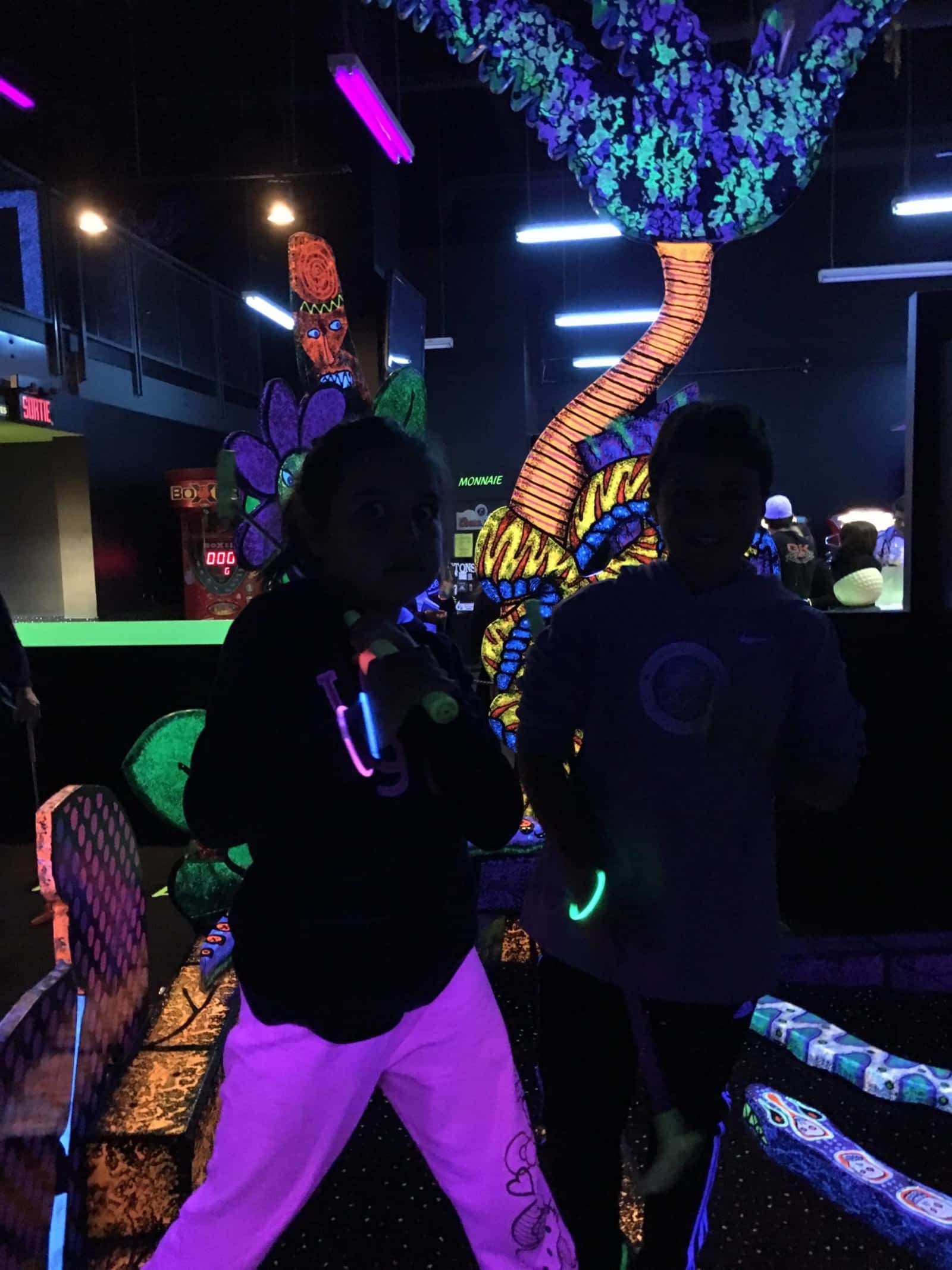 jouer au mini putt dans une ambiance glow in the dark, vraiment plaisant.