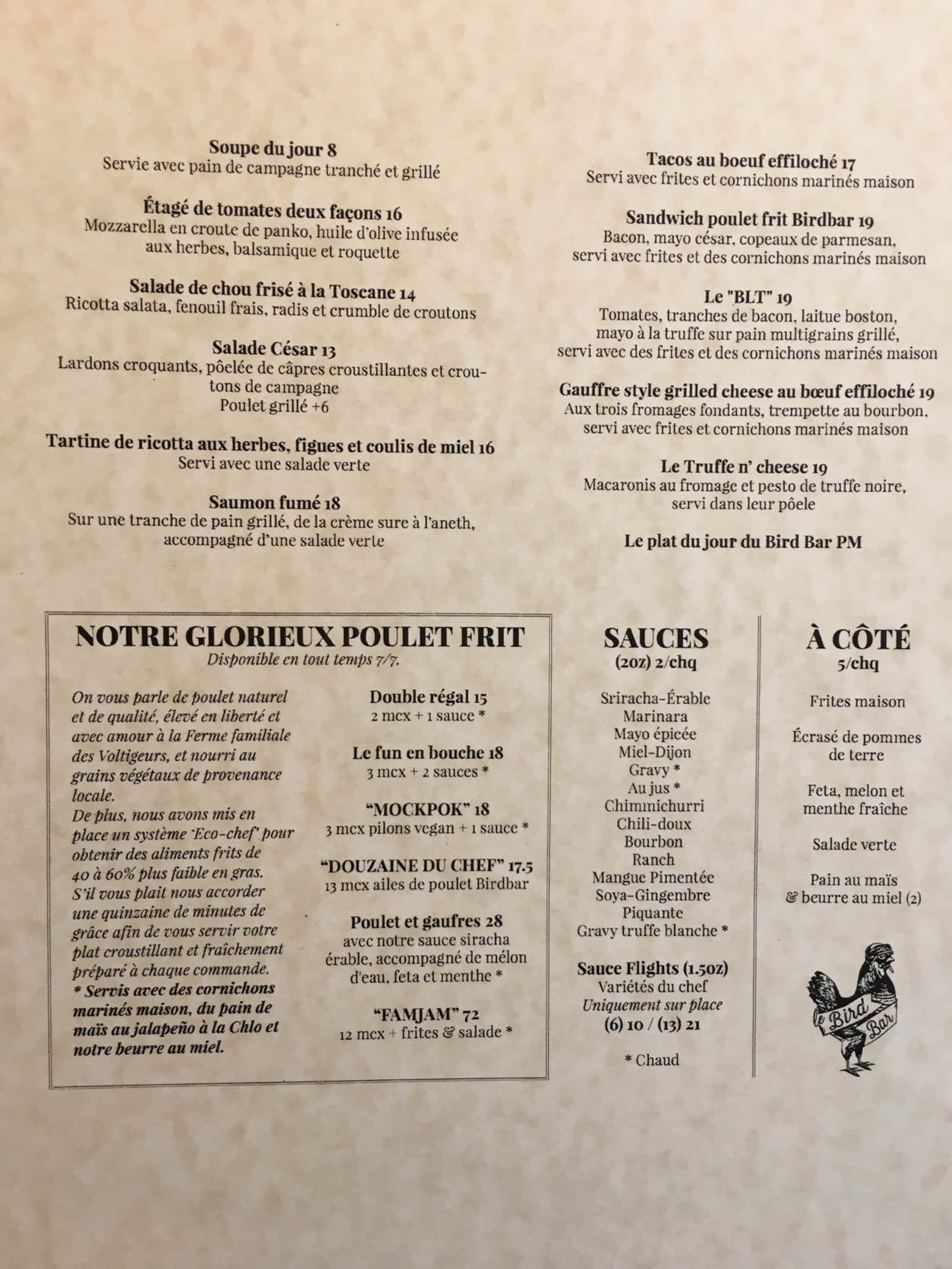 Great ambiance, a lot of dishes with chicken. Beers on tap as well as bottles available. A bit on the expensive side, a chicken sandwich would cost you around 18$. They also have a dish with chicken and watermelons.