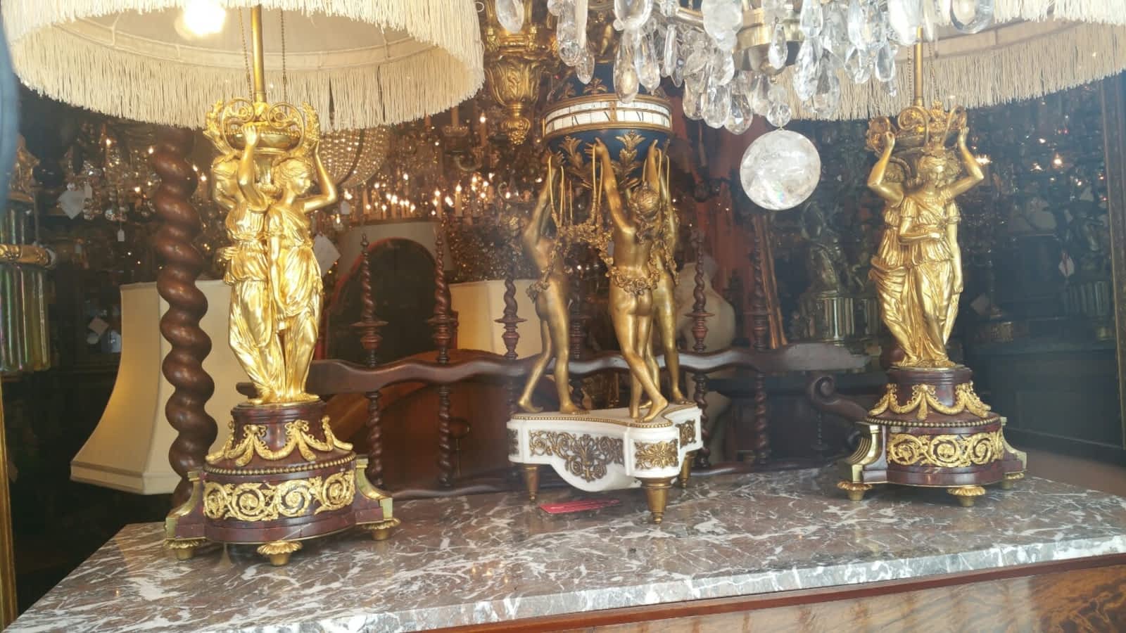 Grand Central Inc se spécialise dans l'éclairage antique, le mobilier et les objets décoratifs du 18e au 19e siècle, proposant une collection diversifiée comprenant des lustres, des horloges, des miroirs et des œuvres d'art.